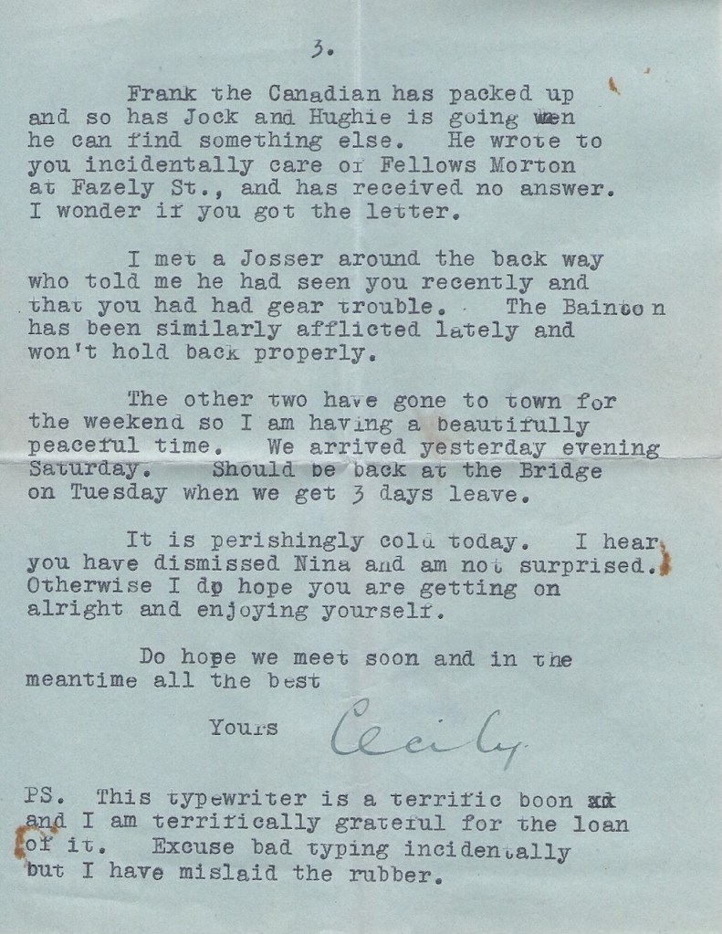The following letter from Cecily Ramsay to Molly gives an insider view of the various characters involved in the Training Scheme at the end of 1943. It is quite a revealing account of the inter-personal dynamics and rivalries, and gives a very different perspective to the glamorous image of the young women portrayed in the Daily Sketch article above.