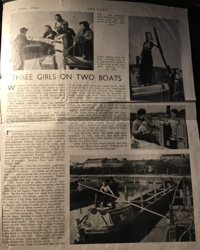 The story of her experiences on a boat on the English canals during the war, trading between London and Birmingham, was the subject of an address given by Miss Cecily Ramsay to the Travel Club, which met in the Tudor Hall, Savoy, yesterday morning.
